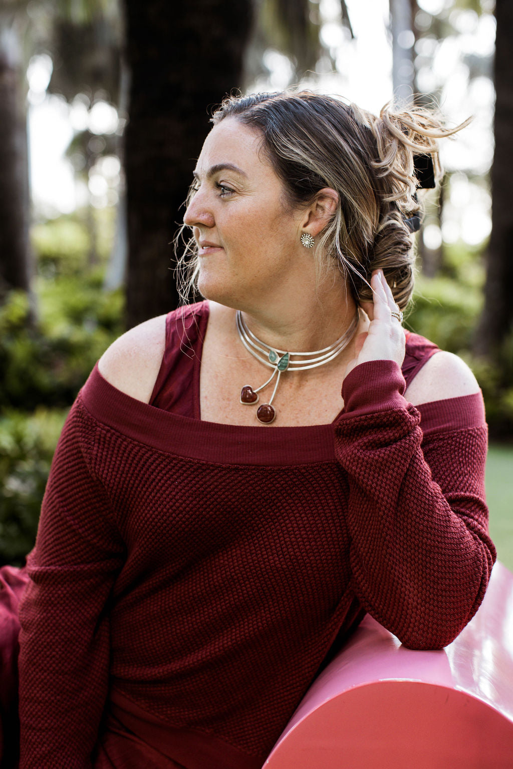 Designed as a true statement choker, Bourbon Kiss sits confidently at the neckline and was made to be noticed. It’s bold, playful, and unapologetically self-assured—meant to elevate any look and remind you to take up space.
