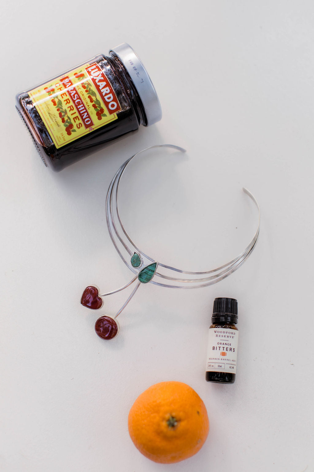 Inspired by the timeless Old Fashioned and the ritual of a well-made drink, the Bourbon Kiss Choker is a nod to slow pours, good company, and nights that linger. Featuring a bold cherry motif, this piece captures the final kiss of an Old Fashioned—the garnish that ties it all together.